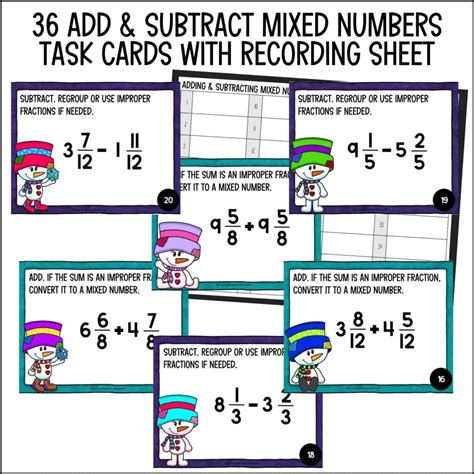 Adding Mixed Numbers Task Cards - Use these cards for learning centers, small. Each task card allows students to. Simply print and cut out. Web this set of 28 task cards includes adding and subtracting mixed number word problem task cards. Web this set of 32 task cards allows students to practice adding and subtracting mixed numbers with the same denominators.
